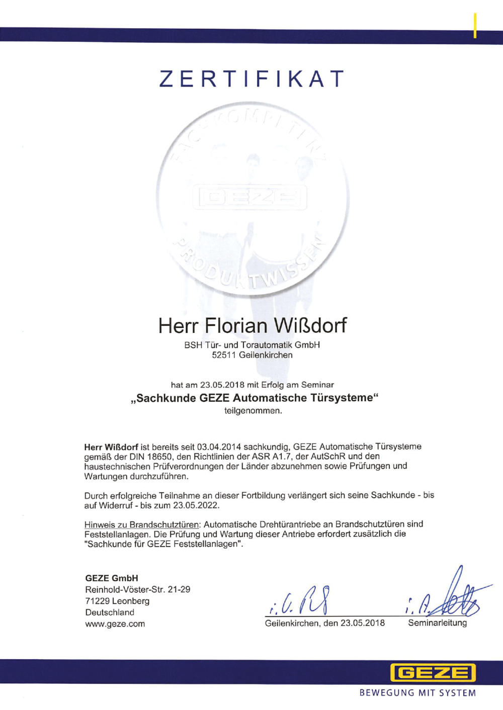 Die BSH Tür- und Torautomatik GmbH wurde 1998 gegründet und ist heute ein zertifiziertes Unternehmen zur Planung, Herstellung,